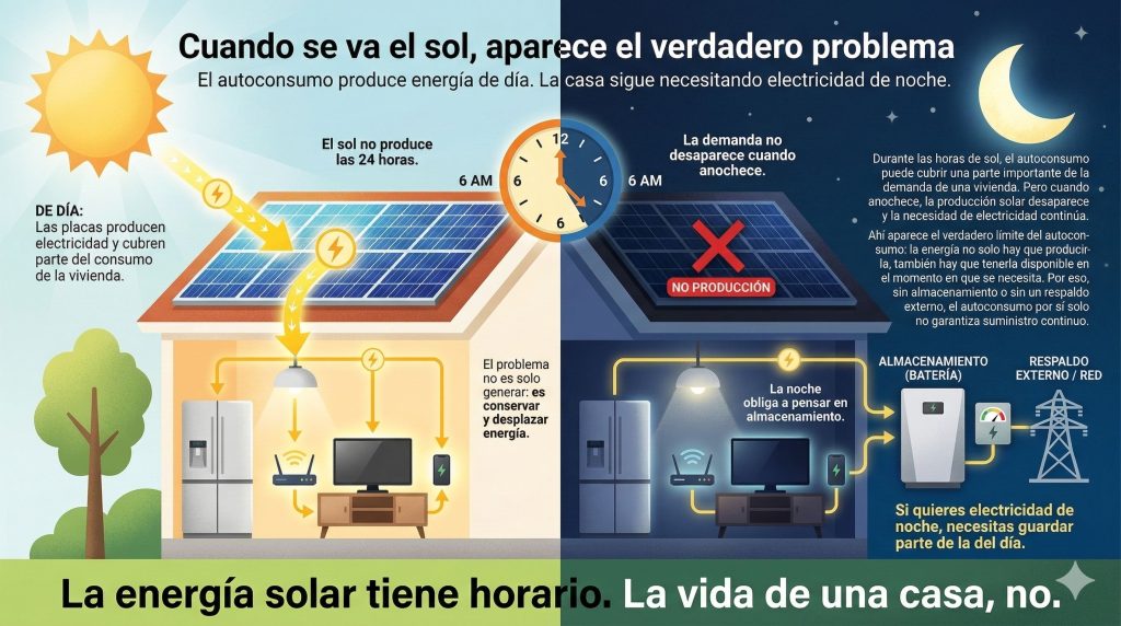 Derivado de lo anterior, nos encontramos con una de las situaciones que más sorpresa causa a quienes acaban de dar el salto a la energía solar. Imagina un día radiante de verano; de repente, una avería externa provoca un apagón general en tu zona. Lo lógico sería pensar que, teniendo el sol sobre tu casa, tus electrodomésticos seguirán funcionando.