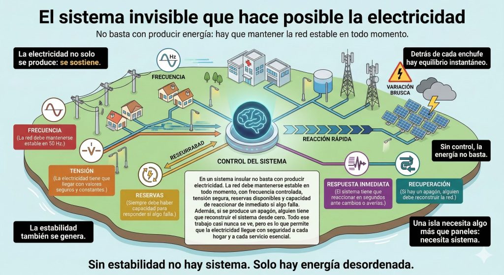 No es un fallo, es un mecanismo de seguridad vital conocido como «protección anti-isla». Si la red cae, tu sistema debe dejar de inyectar electricidad para proteger a los operarios que, en ese mismo momento, están trabajando en las líneas para devolvernos la luz. Además como antes se vio al no tener referencia de red no sabe como continuar. Esta realidad nos lanza un mensaje contundente: no basta con generar energía limpia; necesitamos infraestructuras, almacenamiento y redes inteligentes capaces de sostenernos cuando las cosas fallan.